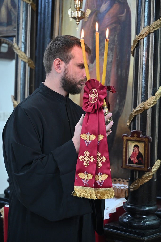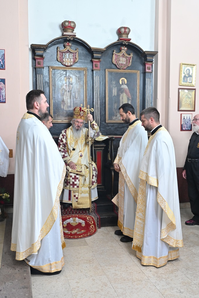 Његовом Високопреосвештенству су саслуживали Архијерејски намесник орашачки, протојереј-ставрофор Мићо Ћирковић, Архијерејски намесник опленачки, протојереј-ставрофор Миладин Михаиловић, протојереји Слободан Раковић и Александар Миловановић, протонамесник Немања Искић, јереј Марко Урошевић, протођакон Иван Гашић и ђакон Александар Бабић.